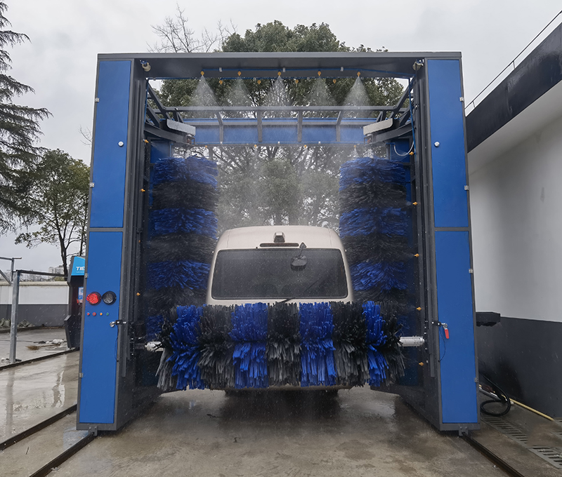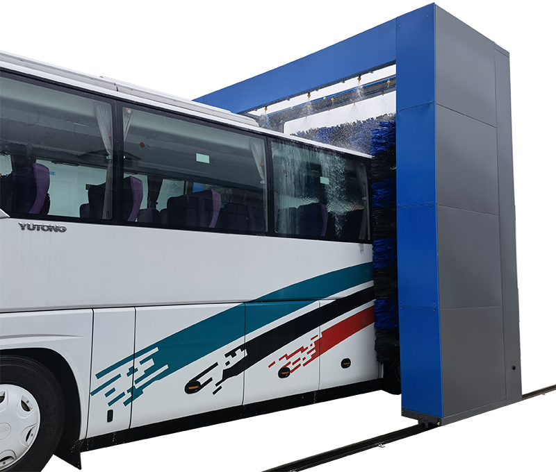 可以根據(jù)需要,選擇單程清洗或往復(fù)清洗功能,并可選擇清洗過程中是否使用頂刷清洗車頭、車尾或車頂。清洗后的水經(jīng)過處理后循環(huán)使用。具有自動(dòng)與手動(dòng)控制功能并能選擇是否使用清洗劑清洗,同時(shí)具有多項(xiàng)安全保護(hù)功能。(雙刷結(jié)構(gòu),頂部由高壓水沖洗)
