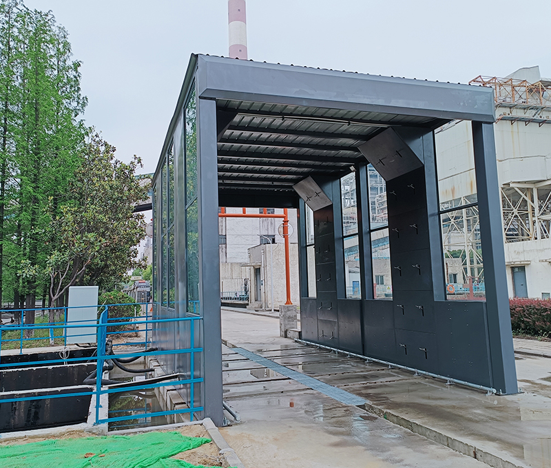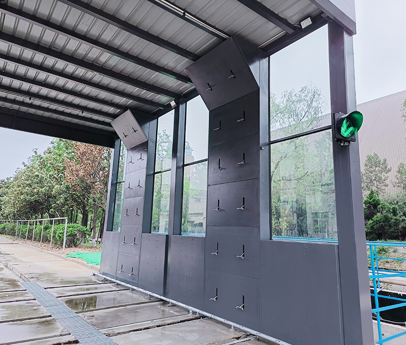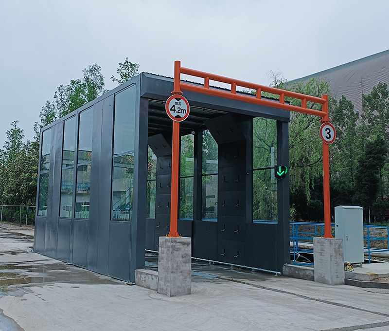 2、車輛緩慢向前移動(dòng),進(jìn)入循環(huán)水沖洗平臺(tái)區(qū)域,高壓水噴嘴對(duì)車輛輪胎、底盤、兩側(cè)、進(jìn)行徹底清洗。沖洗時(shí)間一般40~120s,根據(jù)實(shí)際沖洗效果控制車輛行駛速度來(lái)控制沖洗時(shí)間。